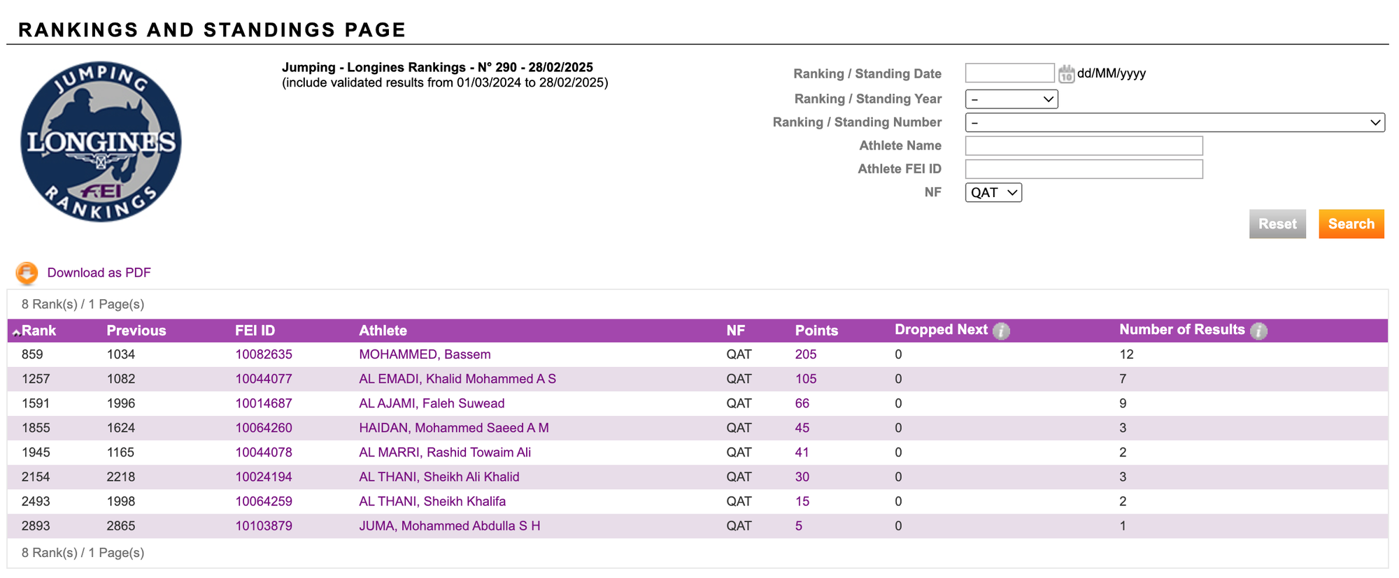 For 2025 there are currently 17 FEI events listed in Saudi Arabia calendar. This includes two CSI5* and one CSI4. Saudi Arabia have 25 riders on the Longines World Ranking.