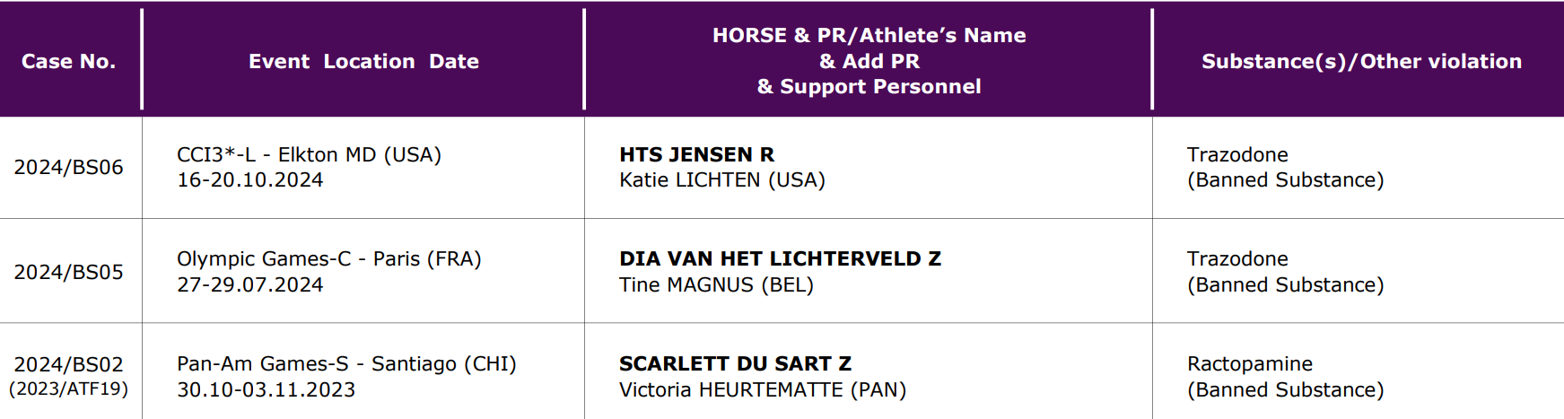 Even more so since the current Table of Suspension list on the FEI list dates back to 2020, and there are only the two eventing related case on it. One being Dia van het Lichterveld Z and the other being HTS Jensen R.